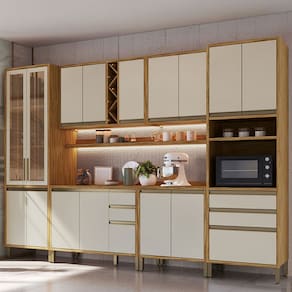 - Acompanha: 1 Armário de Cozinha, 1 Balcão, 1 Tampo, Kit Ferragens e Manual de Montagem
