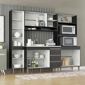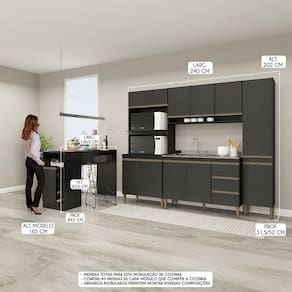 Armário De Cozinha Modulada Com Bancada Ilha 5pç Menu Móveis Preto A Cozinha Modulada Sabrina foi desenvolvida para atender todas as suas necessidades do dia a dia com um design moderno, cheio de atitude, personalidade, funcionalidade, beleza e versatilidade. A Cozinha preta e a tendencia do momento e foi arquitetada com modulos uteis que vao facilitar a sua rotina diaria nos preparos dos alimentos e armazenamento dos utensilios e mantimentos, mantendo sua cozinha sempre organizada.