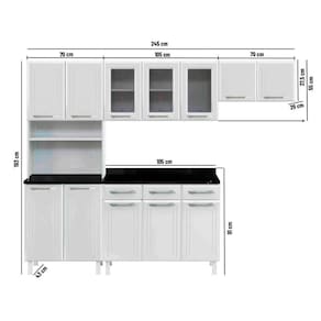 Altura: 193cm | Largura: 245cm | Profundidade: 43cm (Balcão) - 29cm (Aéreos)