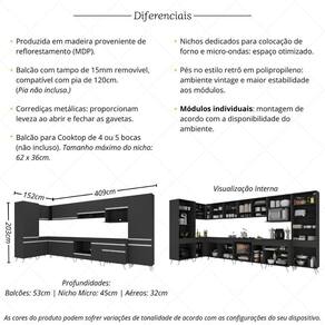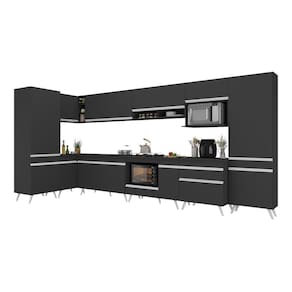 Armário De Cozinha Modulada Completa Canto 409cm Com Balcão Veneza Multimóveis Mp2303 Preto/branco Preto/branco
