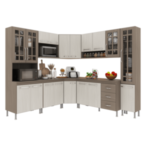 Com módulos avulsos, cada peça é independente, permitindo diferentes composições para melhor aproveitamento do espaço. Seu interior é bem distribuído, com prateleiras e divisórias que auxiliam na organização de utensílios e mantimentos.