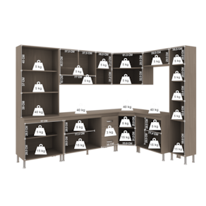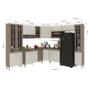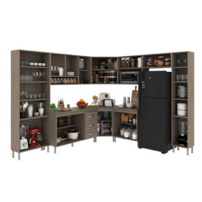 Com módulos avulsos, cada peça é independente, permitindo diferentes composições para melhor aproveitamento do espaço. Seu interior é bem distribuído, com prateleiras e divisórias que auxiliam na organização de utensílios e mantimentos.