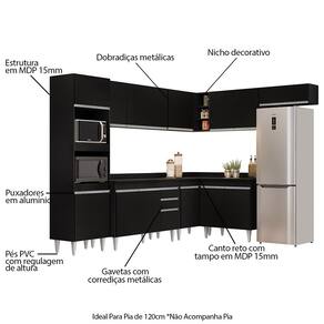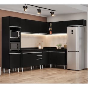 Se você procura por praticidade, beleza e organização, o Armário de Cozinha Modulada de Canto 8 Peças CP02 Balcão com Tampo Preto, da Lumil, é perfeito para sua casa, confira os detalhes!