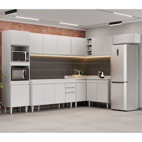 Você está procurando uma Cozinha Modulada que seja prática, bonita e funcional? Então conheça o Armário de Cozinha Modulada de Canto 8 Peças CP07 Balcão Branco, da Lumil e encante-se!