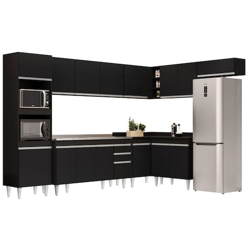 Procurando por Móveis para Cozinha que combinem beleza, qualidade e funcionalidade? Vem conhecer os detalhes do Armário de Cozinha Modulada de Canto 8 Peças CP09 Balcão com Pia Inox Preto, da Lumil!