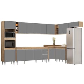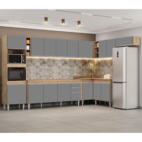 Se você está procurando uma cozinha que seja bonita e funcional, conheça o Armário de Cozinha Modulada de Canto 9 Peças CP04 Balcão Castanho/Cinza, da Lumil e surpreenda-se!