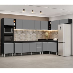 Se você está procurando uma cozinha que seja bonita e funcional, conheça o Armário de Cozinha Modulada de Canto 9 Peças CP04 Balcão Preto/Cinza, da Lumil e surpreenda-se!