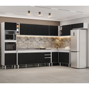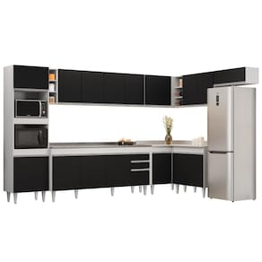 A Cozinha dos sonhos existe! Vem conhecer o Armário de Cozinha Modulada de Canto 9 Peças CP06 com Pia Inox Branco/Preto, da Lumil e apaixone-se!