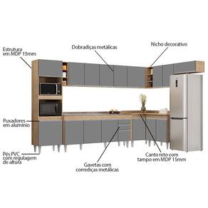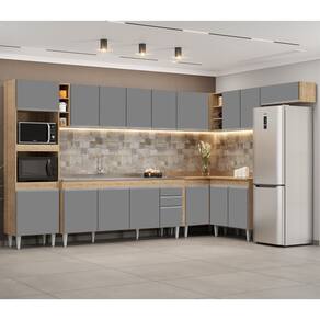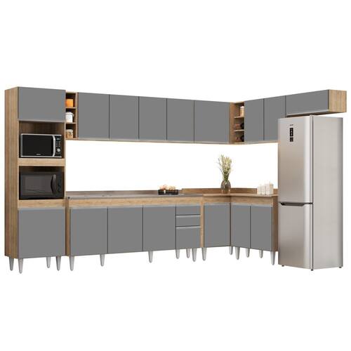A Cozinha dos sonhos existe! Vem conhecer o Armário de Cozinha Modulada de Canto 9 Peças CP06 com Pia Inox Castanho/Cinza, da Lumil e apaixone-se!