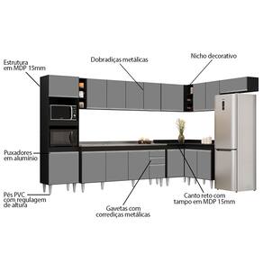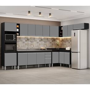 A Cozinha dos sonhos existe! Vem conhecer o Armário de Cozinha Modulada de Canto 9 Peças CP06 com Pia Inox Preto/Cinza, da Lumil e apaixone-se!