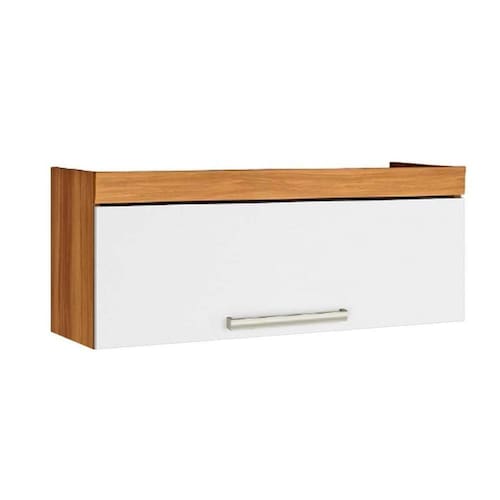 Armário Aéreo p/ Cozinha Burguesa c/ 1 Porta Basculante 80cm Freijó/Branco - Nesher
