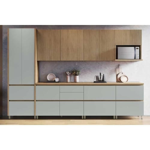 Cozinha Completa Rainha Gourmet 7 Peças (3Aéreos+3Balcões+1Paneleiro) C7P01 Nature/Verde - Nesher Abaixo segue os produtos que compoem o KIT: