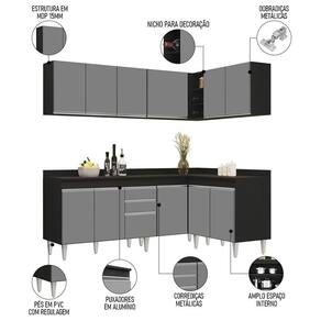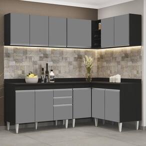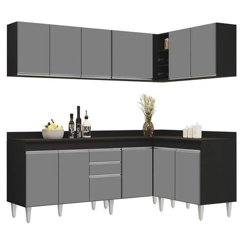 Transforme a sua cozinha em um ambiente prático e funcional com o Armário de Cozinha Modulado de Canto 6 Peças CP29 Balcão com Tampo Preto/Cinza, da Lumil, você terá tudo o que precisa ao seu alcance. Composto por 6 peças inteligentemente projetadas com balcão gabinete com tampo, armários aéreos, balcão de canto e balcão 2 portas, esse armário modulado oferece uma interna perfeita para organizar todos os seus utensílios.