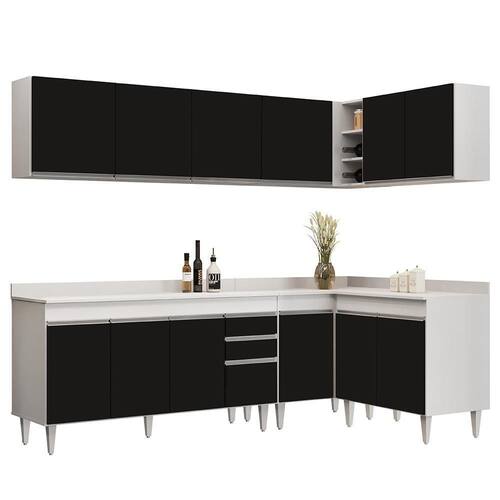 Procura uma cozinha prática e funcional?! Então, acaba de encontrar. Com o Armário de Cozinha Modulado de Canto 6 Peças CP32 Balcão com Tampo Branco/Preto, da Lumil, você terá tudo o que precisa ao seu alcance. Composto por 6 peças inteligentemente projetadas, esse armário modulado oferece uma interna perfeita para organizar todos os seus utensílios.