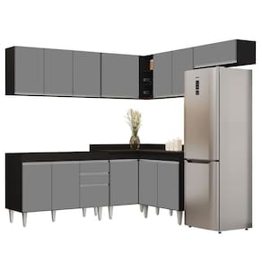 Você merece uma cozinha prática e funcional! Com o Armário de Cozinha Modulado de Canto 7 Peças CP19 Balcão sem Tampo Preto/Cinza, da Lumil, você terá tudo o que precisa ao seu alcance. Composto por 7 peças inteligentemente projetadas com balcão para pia, armários aéreos, nicho garrafeiro, balcão de canto, e balcão 2 portas, esse armário modulado oferece uma interna perfeita para organizar todos os seus utensílios.