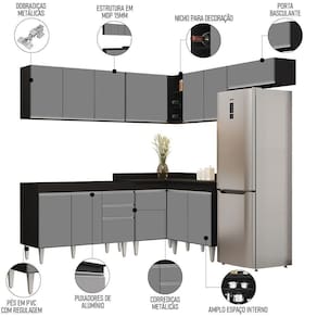 Além disso, o acabamento BP confere a esse jogo de cozinha completo uma maior resistência contra riscos e umidade, garantindo sua durabilidade por muito tempo. Já os pés ajustáveis permitem que você nivelar o móvel em qualquer tipo de piso. Para completar, o design contemporâneo dessa cozinha de canto se adapta facilmente a qualquer estilo de decoração, ao passo que a configuração de canto otimiza a circulação no ambiente.