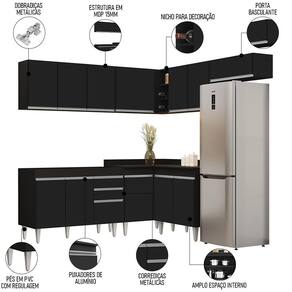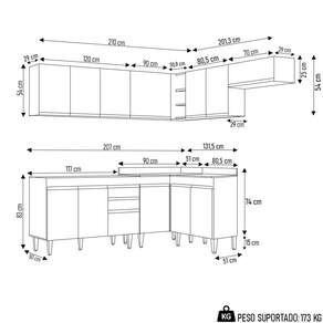 Conteúdo da Embalagem: 1 Balcão 120cm, 1 Armário Aéreo 120cm, 1 Armário Aéreo 70cm, 1 Armário Aéreo 80cm, 1 Balcão 80cm, 1 Balcão de canto, 1 Armário Aéreo de Canto.
