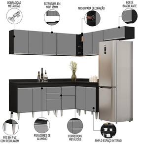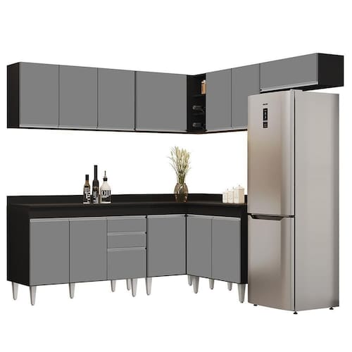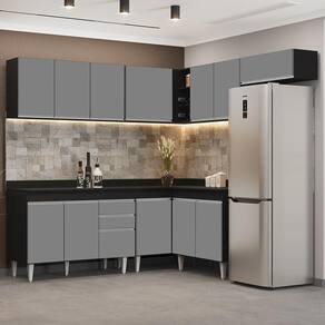 Você merece uma cozinha prática e funcional! Com o Armário de Cozinha Modulado de Canto 7 Peças CP20 Balcão com Tampo Preto/Cinza, da Lumil, você terá tudo o que precisa ao seu alcance. Composto por 7 peças inteligentemente projetadas com balcão com tampo, armários aéreos, nicho garrafeiro, balcão de canto, e balcão 2 portas, esse armário modulado oferece uma interna perfeita para organizar todos os seus utensílios.