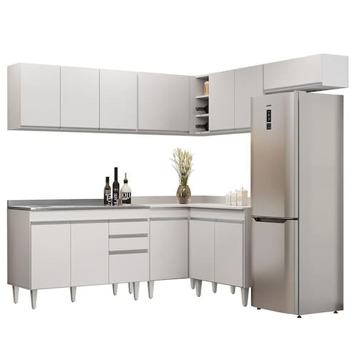 Além disso, o acabamento BP confere a esse jogo de cozinha completo uma maior resistência contra riscos e umidade, garantindo sua durabilidade por muito tempo. Já os pés ajustáveis permitem que você nivelar o móvel em qualquer tipo de piso. Para finalizar, o tampo de pia inox completa a funcionalidade, ao passo que o design contemporâneo dessa cozinha de canto se adapta facilmente a qualquer estilo de decoração, ao passo que a configuração de canto otimiza a circulação no ambiente.