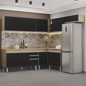 Além de ser composto por peças essenciais, como balcão gabinete com tampo, armários aéreos, balcão de canto e balcão 2 portas, esse jogo de cozinha completo ainda conta com uma maior resistência contra riscos e umidade, garantindo sua durabilidade por muito tempo, graças ao acabamento em BP. Já os pés ajustáveis permitem você nivelar o móvel em qualquer tipo de piso. Para completar, o design contemporâneo dessa cozinha de canto se adapta facilmente a qualquer estilo de decoração, ao passo que a configuração de canto otimiza a circulação no ambiente.