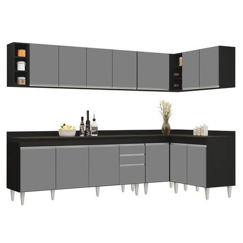 Renove a sua cozinha com o Armário de Cozinha Modulado de Canto 7 Peças CP35 Balcão com Tampo Preto/Cinza, da Lumil, você terá tudo o que precisa ao seu alcance. Composto por 7 peças inteligentemente projetadas, esse armário modulado oferece uma interna perfeita para organizar todos os seus utensílios.