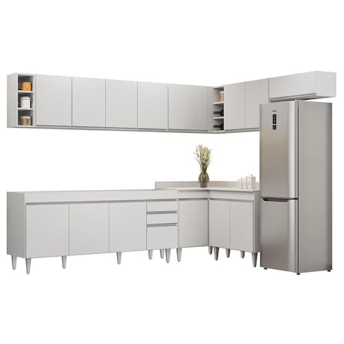 Renove a sua cozinha com o Armário de Cozinha Modulado de Canto 8 Peças CP25 Balcão sem Tampo Branco, da Lumil, você terá tudo o que precisa ao seu alcance. Composto por 8 peças inteligentemente projetadas, esse armário modulado oferece uma interna perfeita para organizar todos os seus utensílios.