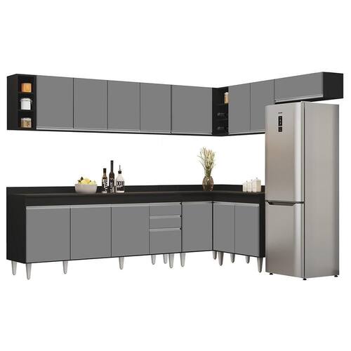 Material: MDP | Model: CP 26 | ProductHeight: 202 cm | Origem: | SupplierSimpleName: Armário de Cozinha Modulado de Canto 8 Peças CP26 Balcão com Tampo PretoCinza - Lumil | Cor: PretoCinza
