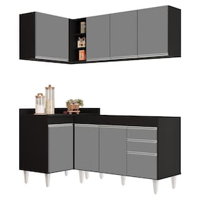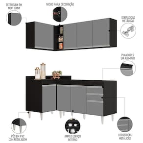 Prático, compacto e funcional, com o Armário de Cozinha Modulado de Canto Direito 4 Peças CP37 Balcão sem Tampo Preto/Cinza, da Lumil, você terá tudo o que precisa ao seu alcance, uma vez que esse armário modulado oferece uma interna perfeita para organizar todos os seus utensílios, pois é composto por 4 peças escolhidas minuciosamente, com balcão para pia, balcão de canto, e dois armários aéreos, sendo um de canto com nicho.
