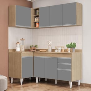 Além disso, o acabamento BP confere a esse jogo de cozinha completo uma maior resistência contra riscos e umidade, garantindo sua durabilidade por muito tempo. Já os pés ajustáveis permitem que você nivelar o móvel em qualquer tipo de piso. Para completar, o design contemporâneo dessa cozinha de canto se adapta facilmente a qualquer estilo de decoração, ao passo que a configuração de canto otimiza a circulação no ambiente.