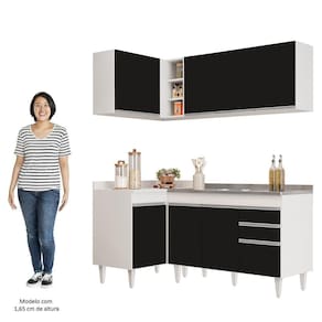 Prático, compacto e funcional, com o Armário de Cozinha Modulado de Canto Direito 4 Peças CP39 com Pia Inox Branco/Preto, da Lumil, você terá tudo o que precisa ao seu alcance, uma vez que esse armário modulado oferece uma interna perfeita para organizar todos os seus utensílios, pois é composto por 4 peças escolhidas minuciosamente, com balcão de pia, balcão de canto, e dois armários aéreos, sendo um de canto com nicho. Já a pia inox completa a cozinha e dá aquele toque final no visual e funcionalidade.