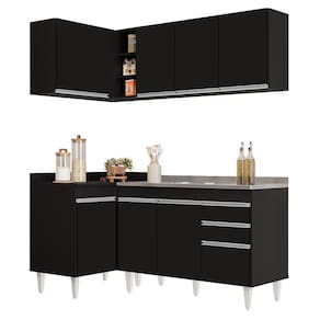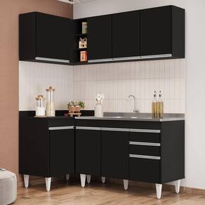 Conteúdo da Embalagem: 1 Balcão 120cm, 1 Armário Aéreo 120cm, 1 Balcão de Canto, 1 Armário Aéreo de Canto, 1 Pia Inox 120cm.