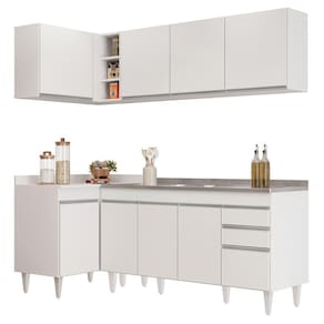 Model: CP 42 | ProductHeight: 202 cm | Origem: | Cor: Branco | Material: MDP | SupplierSimpleName: Armário de Cozinha Modulado de Canto Direito 4 Peças CP42 com Pia Inox Branco - Lumil