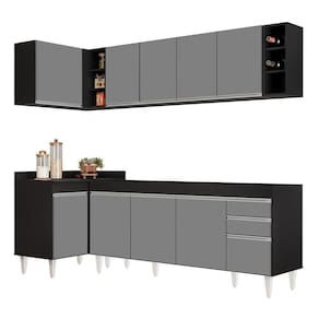 Origem: | Cor: PretoCinza | Material: MDP | SupplierSimpleName: Armário de Cozinha Modulado de Canto Direito 5 Peças CP43 Balcão sem Tampo PretoCinza - Lumil | Model: CP 43 | ProductHeight: 202 cm