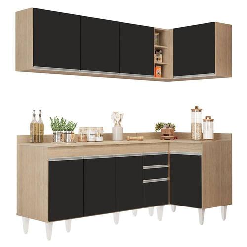 Além de ser composto por peças essenciais, como balcão para pia 150cm, balcão de canto e armários aéreos, esse jogo de cozinha ainda conta com uma maior resistência contra riscos e umidade, garantindo sua durabilidade por muito tempo, graças ao acabamento em BP. Já os pés ajustáveis permitem você nivelar o móvel em qualquer tipo de piso. Para completar, o design contemporâneo dessa cozinha de canto se adapta facilmente a qualquer estilo de decoração, ao passo que essa configuração otimiza a circulação no ambiente. Bom demais, não é mesmo?!