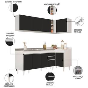 Conteúdo da Embalagem: 1 Balcão 150cm, 1 Armário Aéreo 150cm, 1 Balcão de canto, 1 Armário Aéreo de Canto, 1 Pia Inox 150cm.