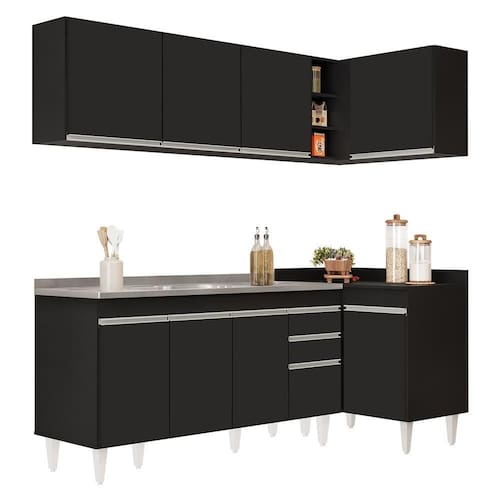 Material: MDP | Cor: Preto | Origem: | SupplierSimpleName: Armário de Cozinha Modulado de Canto Esquerdo 4 Peças CP51 com Pia Inox Preto - Lumil | Model: CP 51 | ProductHeight: 202 cm