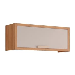 Armário Aéreo p/ Cozinha Eloise Geladeira c/1 Porta Basculante Riscada 80 cm Freijo/Off White - MGM