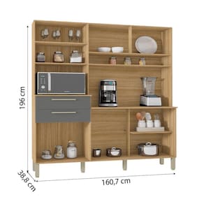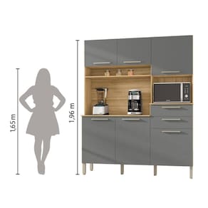 A Cozinha Montesa foi pensada nos mínimos detalhes para atender as necessidades do dia a dia, mantendo a elegância da sua cozinha ou área gourmet, com 2 gavetas e Nichos com espaço para forno ou Micro-ondas. Além de possuir compartimentos internos que facilitam a organização e praticidade. Produzida com material de qualidade, garantindo a durabilidade do produto. Medidas: [ A ] = 196 cm [ L ] = 160,7cm [ P ] = 38,8 cm MODELO: Armário de Cozinha Completa Montesa 6 Portas 2 Gavetas MARCA: Kit's Paraná COR: Frejó /Grafite MATERIAL: MDP 12mm PINTURA:Pintura UV ACABAMENTO:UV PORTAS: 6 portas TIPOS DE PORTAS: Bater GAVETAS: 2 gavetas GAVETAS SUPORTAM: 4 kg PRATELEIRAS: 3 PRATELEIRAS SUPORTAM: 5kg à 7kg POSSUI NICHOS: Sim PUXADORES: Plástico DOBRADIÇAS: Metálicas CORREDIÇAS: Metálicas PÉS: 6 MATERIAL DOS PÉS: Plástico POSSUI TAMPO: Sim MATERIAL DO TAMPO: MDP15 PESO: 64kg SUPORTA: 73kg SITEMA DE MONTAGEM: Pregos parafusos e cavilhas RECOMENDAÇÕES DE LIMPEZA: A limpeza do móvel de ser efetuada somente pano macio e moderadamente umedecido com água pura ou solução com sabão neutro. Evitar mover o produto com utensílios dentro do mesmo. Atentar para as especificações no esquema de montagem, sobre o peso suportado pelo produto. GARANTIA: 3 Meses Montagem não inclusa. Entregamos até a porta de entrada da casa do cliente ou até a portaria do condomínio. MODELO:: Armário de Cozinha Completa Montesa 6 Portas 2 Gavetas | MARCA:: Kit's Paraná | COR:: Frejó /Grafite | Medidas:: [ A ] = 196 cm [ L ] = 160,7cm [ P ] = 38,8 cm | MATERIAL:: MDP 12mm | PINTURA:: Pintura UV | ACABAMENTO:: UV | PORTAS:: 6 portas | TIPOS DE PORTAS:: Bater | GAVETAS:: 2 gavetas | GAVETAS SUPORTAM:: 4 kg | PRATELEIRAS:: 3 | PRATELEIRAS SUPORTAM:: 5kg à 7kg | POSSUI NICHOS:: Sim | PUXADORES:: Plástico | DOBRADIÇAS:: Metálicas | CORREDIÇAS:: Metálicas | PÉS:: 6 | MATERIAL DOS PÉS:: Plástico | POSSUI TAMPO:: Sim | MATERIAL DO TAMPO:: MDP15MM | PESO:: 64kg | SUPORTA:: 73kg | SITEMA DE MONTAGEM:: Pregos parafusos e cavilhas | RECOMENDAÇÕES DE LIMPEZA: : A limpeza do móvel de ser efetuada somente pano macio e moderadamente umedecido com água pura ou solução com sabão neutro. Evitar mover o produto com utensílios dentro do mesmo. Atentar para as especificações no esquema de montagem, sobre o peso suportado | GARANTIA:: 3 Meses | OBS:: Montagem não inclusa. Entregamos até a porta de entrada da casa do cliente ou até a portaria do condomínio. | PRODUTO: Armário de Cozinha | MATERIAL DA PORTA: Madeira Cor: Freijo Cinza
