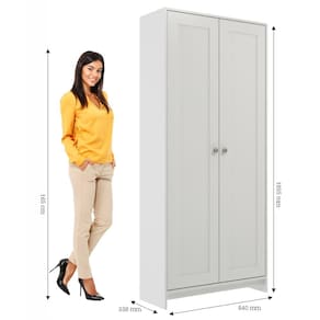 Durabilidade: Feito em MDP com dobradiças metálicas e puxadores plásticos, garante resistência e longa vida útil.