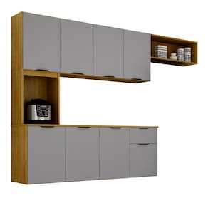 Com 8 portas, 1 gaveta com corrediça telescópica e 2 prateleiras internas, oferece amplo espaço para organizar tudo com estilo.