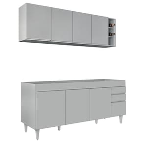 A funcionalidade encontra a beleza no conjunto Armário Nevada e Balcão para Pia 180cm Dallas Cinza Claro da Lumil, uma escolha perfeita para cozinhas que buscam estilo e praticidade.