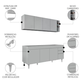 Conteúdo da Embalagem: 1 Balcão, 1 Armário Aéreo, 1 Nicho.
