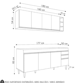 Peso Suportado Distribuído: Balcão 42kg/Armário 40kg.