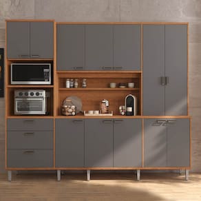Armário de Cozinha Pulse 12 Portas 3 Gavetas Jequitibá/Grafite - Lukaliam