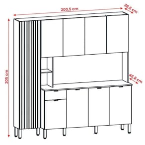 Marca: Kit's Paraná | Altura: 205 cm | Largura: 200,5 cm | Comprimento: 46,8 cm | Altura Embalado: 23,9 | Largura Embalado: 67,9 | Comprimento Embalado: 202 | Peso: 93,2 kg | Peso Embalado: 93,2 | Estado de Origem: SP | Material: MDP de 12 mm, MDP de 15 mm | Modelo: Armário Pulse 9 Portas 1 Gaveta | Descrição do Tamanho: 205 x 200,5 x 46,8 cm | Garantia em meses: 03 meses de garantia para defeitos de fabricação | Precisa de montagem?: Sim | Tipo de móveis de cozinha: Cozinha completa | É kit: Não | Altura do armário: 205 cm | Materiais do corpo: MDP de 12 mm, MDP de 15 mm | Fonte do produto: DoceLar | Modelo detalhado: Armário Pulse 9 Portas 1 Gaveta | Profundidade do balcão: 46,8 cm | Material das corrediças: telescópicas | Com prateleiras: Sim | Material das alças: plástico | Quantidade de portas: 9 | Estilo: Moderno | Altura do balcão: 86 cm | Profundidade do armário: 28,6 cm | Quantidade de gavetas: 1 | Materiais das portas: MDP | Quantidade de peças: 1 | Linha: Cozinha | Largura do balcão: 200,5 cm | Largura do armário: 200,5 cm | Inclui tampo: Sim | Condição do item: | Código ANVISA (32481): Não se aplica | Código da Homologação ANATEL (32495): Não se aplica | Código INMETRO (32486): Não se aplica | Código MAPA (32485): Não se aplica | Baterias são necessárias?: Não | Certificação de teste externa: Não aplicável | Componentes incluídos (included_components): cozinha e manual de montagem | da peça (part_number): 27172 | de caixas (number_of_boxes): 3 | do Modelo (model_number): 27172 | Principais Características do Produto (bullet_piont#0): estrutura em MDP de 12 mm, MDP de 15 mm | Principais Características do Produto (bullet_piont#1): corrediças telescópicas | Principais Características do Produto (bullet_piont#2): suporta até 110 kg distribuidos | Quantidade de Itens (number_of_items): 1 | Preço sugerido sem impostos: 0 | É frágil?: Sim Cor: Freijo/Vanilla/Riscatto Freijo