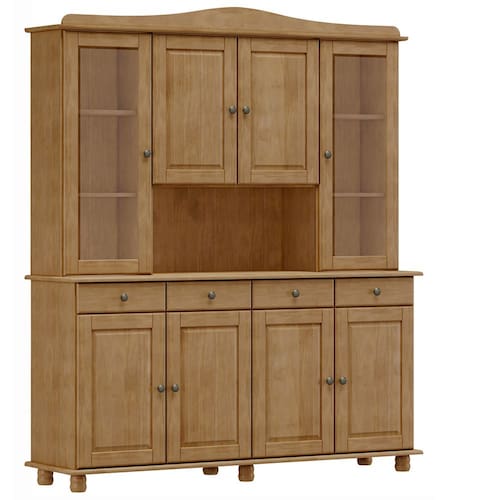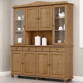 Fabricado em madeira maciça de altíssima qualidade, esse imponente armário com 8 portas (incluindo 2 portas com vidro estilo cristaleira) e 4 gavetas extras oferece um espaço generoso para organizar desde utensílios do dia a dia até coleções especiais de louças e alimentos. Os pés torneados robustos e os puxadores em tonalidade envelhecida reforçam o charme rústico, enquanto os vidros lisos nas portas criam um belo efeito de luz para exibir suas peças mais bonitas. O armário de cozinha rústico perfeito para cozinhas amplas, seja em casas de campo ou até mesmo na cidade, caso você goste de um ar vintage. Seja como for, o armário Lazuli transforma sua cozinha em um espaço digno de fazenda.
