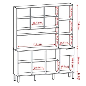 Com amplo espaço de armazenamento para seus utensílios e eletrodoméstico.