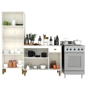 A linha de Cozinha Madrid reúne praticidade, delicadeza e modernidade em seu design. Fabricado em material resistente, chapas 100% em MDF, e diferenciada pintura em uv-ultravioleta.