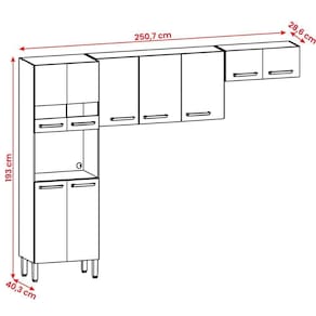 Marca: Kit's Paraná | Altura: 193 cm | Largura: 250,7 cm | Comprimento: 40,3 cm | Altura Embalado: 15,5 | Largura Embalado: 60,8 | Comprimento Embalado: 180,3 | Peso: 57,2 kg | Peso Embalado: 57,2 | Estado de Origem: SP | Material: MDP de 12 mm, MDP de 15 mm, vidro de 03 mm | Modelo: Armário Cozinha Versalhes 9 Portas | Descrição do Tamanho: 193 x 250,7 x 40,3 cm | Garantia em meses: 03 meses de garantia para defeitos de fabricação | Precisa de montagem?: Sim | Tipo de móveis de cozinha: Armário | É kit: Não | Altura do armário: 193 cm | Materiais do corpo: MDP de 12 mm, MDP de 15 mm, vidro de 03 mm | Fonte do produto: DoceLar | Modelo detalhado: Armário Cozinha Versalhes 9 Portas | Profundidade do balcão: N/A | Material das corrediças: N/A | Com prateleiras: Sim | Material das alças: plástico | Quantidade de portas: 9 | Estilo: Moderno | Altura do balcão: N/A | Profundidade do armário: 40,3 cm | Quantidade de gavetas: 0 | Materiais das portas: MDP | Quantidade de peças: 1 | Linha: Cozinha | Largura do balcão: N/A | Largura do armário: 250,7 cm | Inclui tampo: Sim | Condição do item: | Código ANVISA (32481): Não se aplica | Código da Homologação ANATEL (32495): Não se aplica | Código INMETRO (32486): Não se aplica | Código MAPA (32485): Não se aplica | Baterias são necessárias?: Não | Certificação de teste externa: Não aplicável | Componentes incluídos (included_components): armário e manual de montagem | da peça (part_number): 27176 | de caixas (number_of_boxes): 2 | do Modelo (model_number): 27176 | Principais Características do Produto (bullet_piont#0): estrutura em MDP de 12 mm, MDP de 15 mm, vidro de 03 mm | Principais Características do Produto (bullet_piont#1): pés plásticos com regulagem | Principais Características do Produto (bullet_piont#2): suporta até 70 kg distribuidos | Quantidade de Itens (number_of_items): 1 | Preço sugerido sem impostos: 0 | É frágil?: Sim Cor: Freijo/Gris