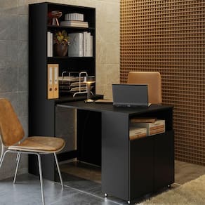 Um só móvel que une organização, praticidade e elegância para deixar seu escritório ou home office muito mais funcional. Com armário amplo e mesa integrada, você aproveita cada cantinho sem abrir mão do conforto. Produzido com materiais de qualidade, garante durabilidade e resistência no dia a dia.
